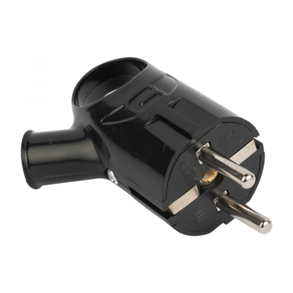 Вилка штепсельная угловая Vx4-B "Эра" (16 A, IP20) с заземлением, с кольцом, черный