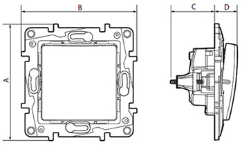 - Комбинация из 2 элементов: механизм + рамка (рамки приобретаются отдельно).