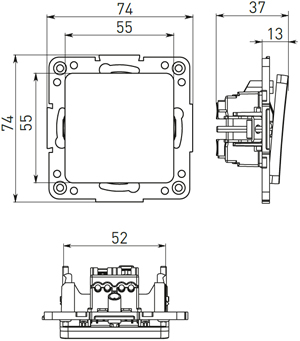 | Исполнение | механизм с суппортом, лицевой панелью, без рамки |