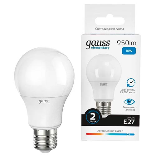 Лампа светодиодная Gauss 23230 Elementary (A60, 220 В, E27, 10 Вт, 950 лм, 6500 К)