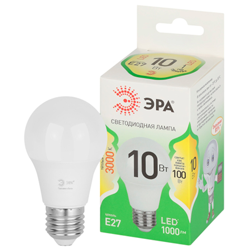 Лампа светодиодная Green Line LED A60-10W-830-E27 GL "Эра" (А60 груша, 10 Вт, 1000 лм, 3000 К)