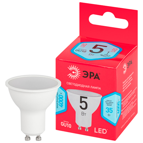 Лампа светодиодная Red Line LED MR16-5W-840-GU10 R "Эра" (220 В, 5 Вт, 400 лм, 4000 К)