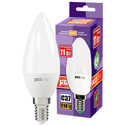 Лампа светодиодная Jazzway PLED-SP С37 11w E14 3000K (свеча, 950 лм)