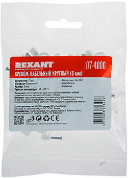 Крепеж кабеля круглый 6 мм Rexant 07-4006, белый, 50 шт.