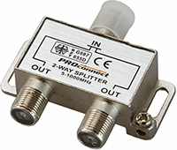 Сплиттер имеет два выхода для сигнала, подключается с помощью стандартных F-разъемов.