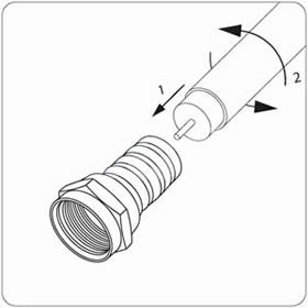| Разъем F устанавливается на кабель методом накрутки гильзы разъема на внешнюю оболочку кабеля после соответствующей зачистки контактов. Какие-либо специальные инструменты для монтажа не требуются. |