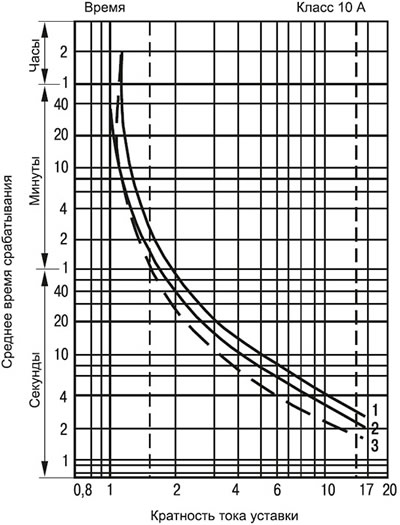 Время-токовые характеристики срабатывания теплового реле