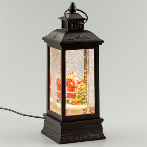 Внутри корпуса расположены блестки, создающие эффект падающего снега, и фигурка Деда Мороза с елочкой, которая подсвечивается светодиодом.