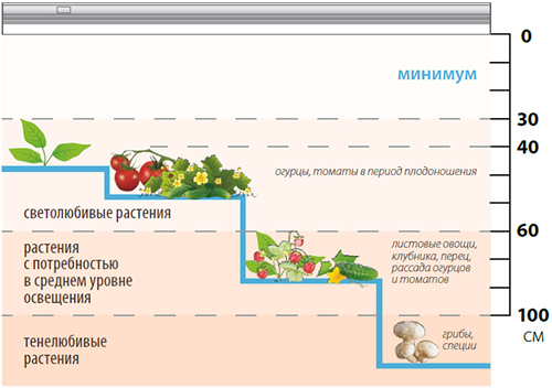 Рекомендуемое расстояние от светильника до листьев: